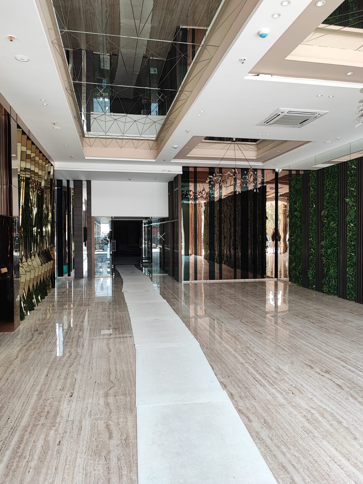Access to high-speed elevators—multi-storey commercial complex with lifts