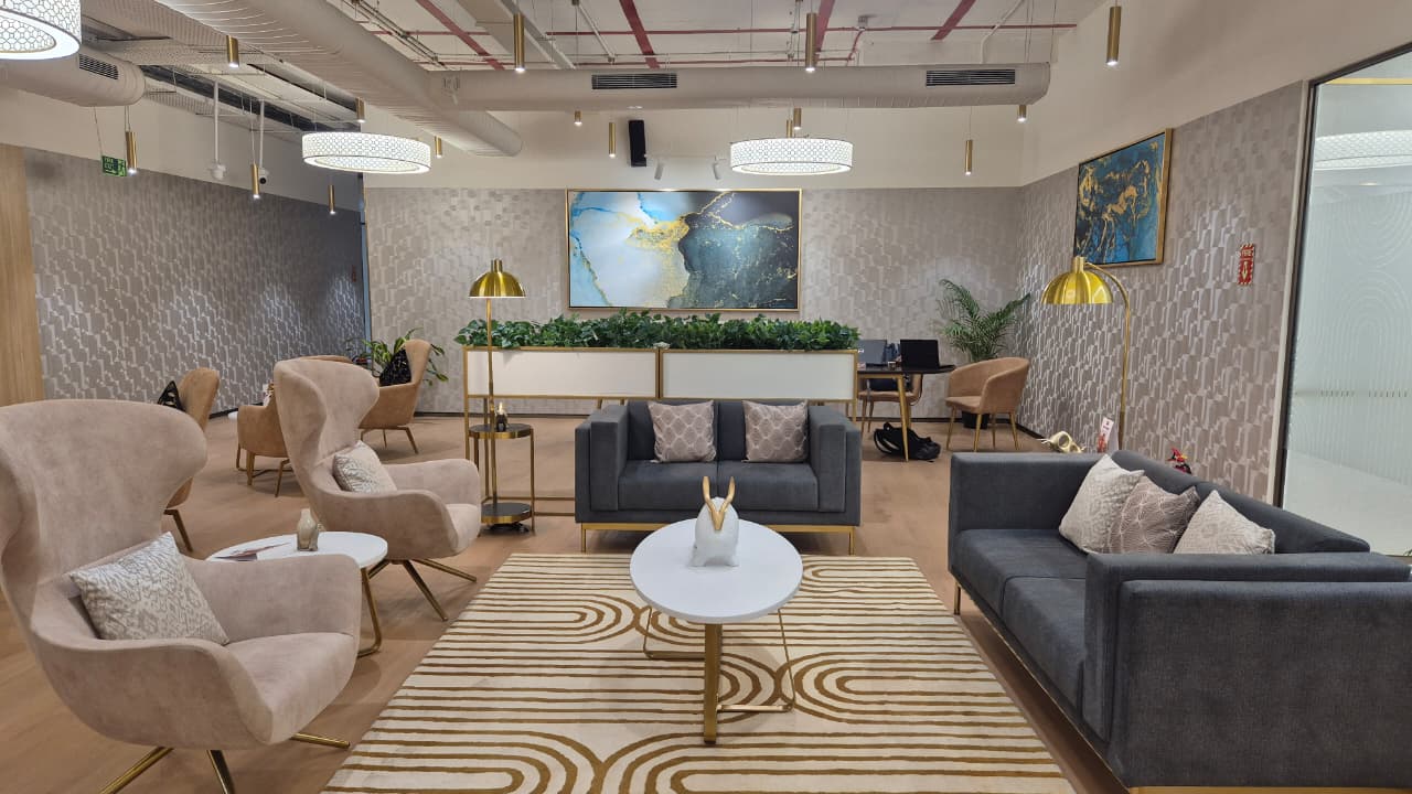 Elegant interiors with modern décor, glass partitions, and ergonomic furniture foster productivity and creativity.