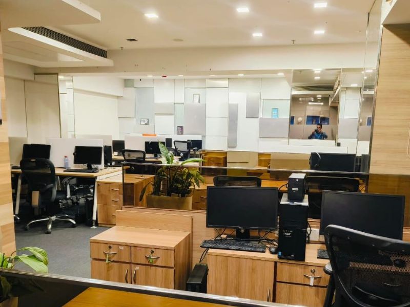 Layout: 2 private washrooms, pantry, 4 cabins, reception + waiting area, server room